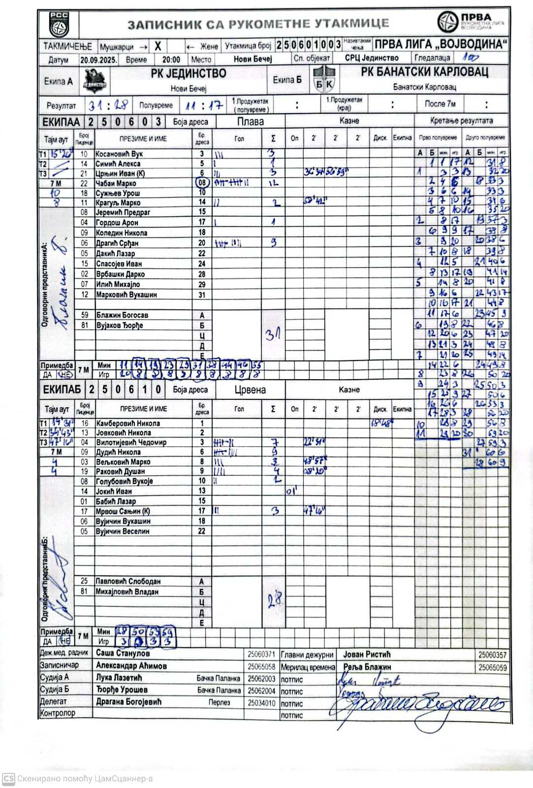 А судија: Лука Лажетић Б судија: Ђорђе Урошев Делегат: Драгана Богојевић |