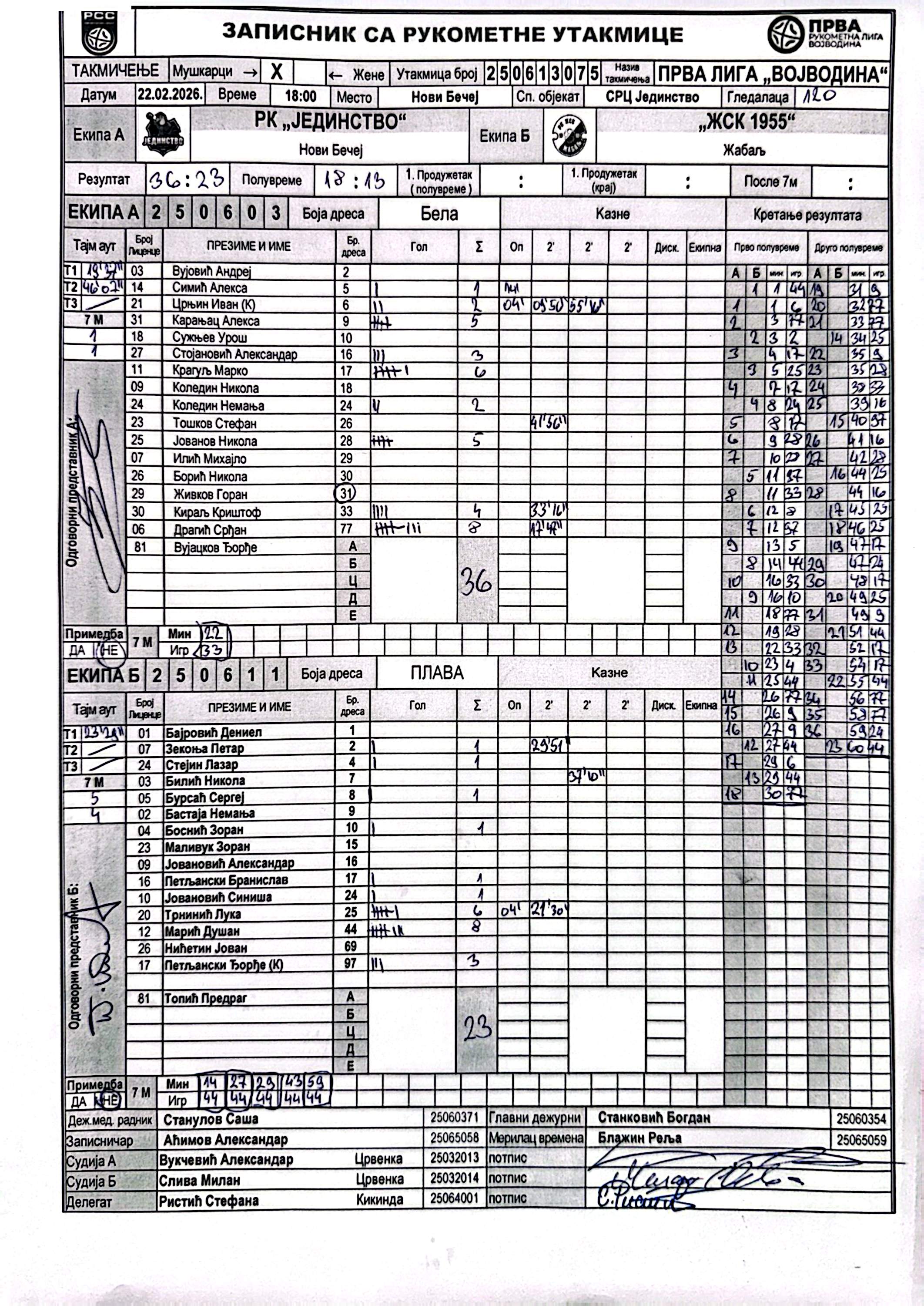 А судија: Александар Вукчевић Б судија: Милан Слива Делегат: Стефана Ристић |