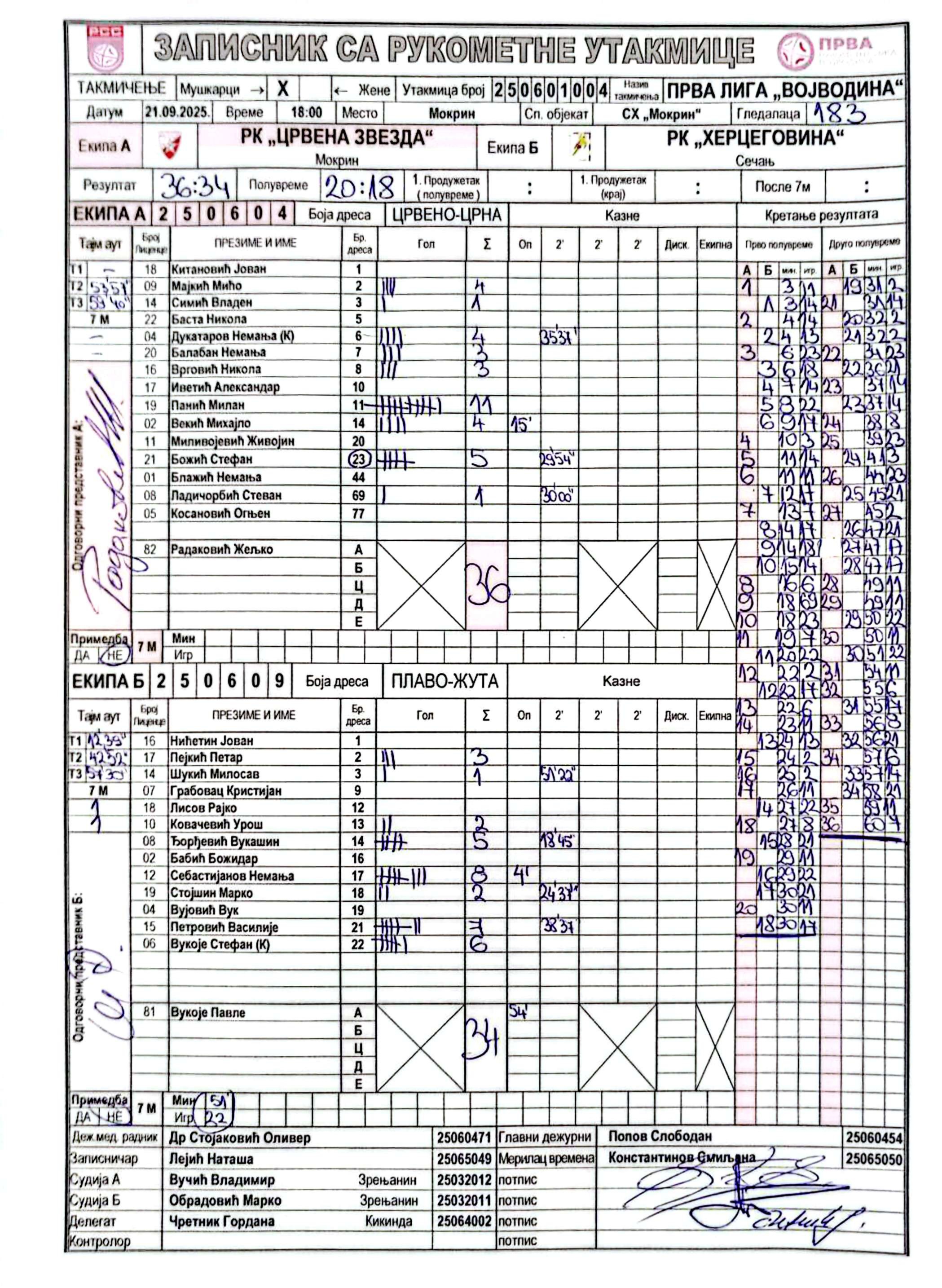 А судија: Владимир Вучић Б судија: Марко Обрадовић Делегат: Гордана Чретник |