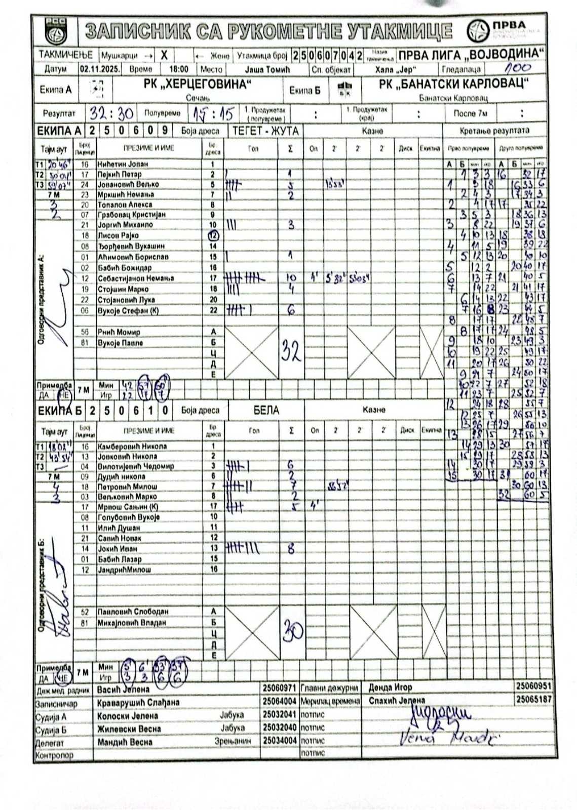 А судија: Јелена Колоски Б судија: Весна Жилевски Делегат: Весна Мандић |