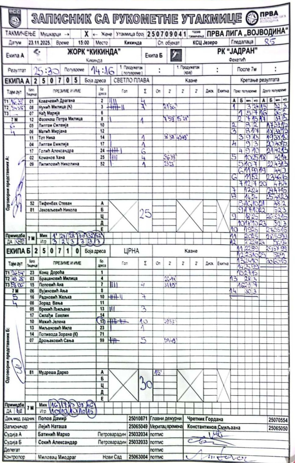 А судија: Марко Батинић Б судија: Александар Сокић Контролор: Миодраг Миловац |