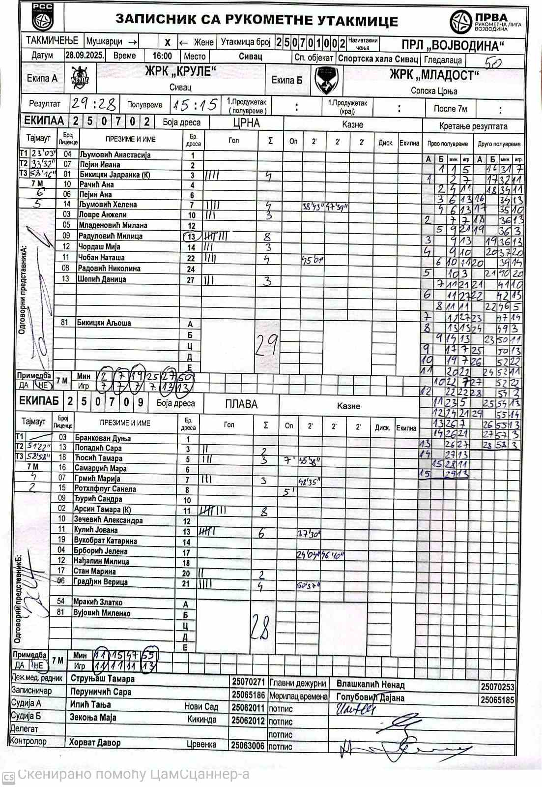 А судија: Тања Илић Б судија: Маја Зекоња Контролор: Давор Хорват |