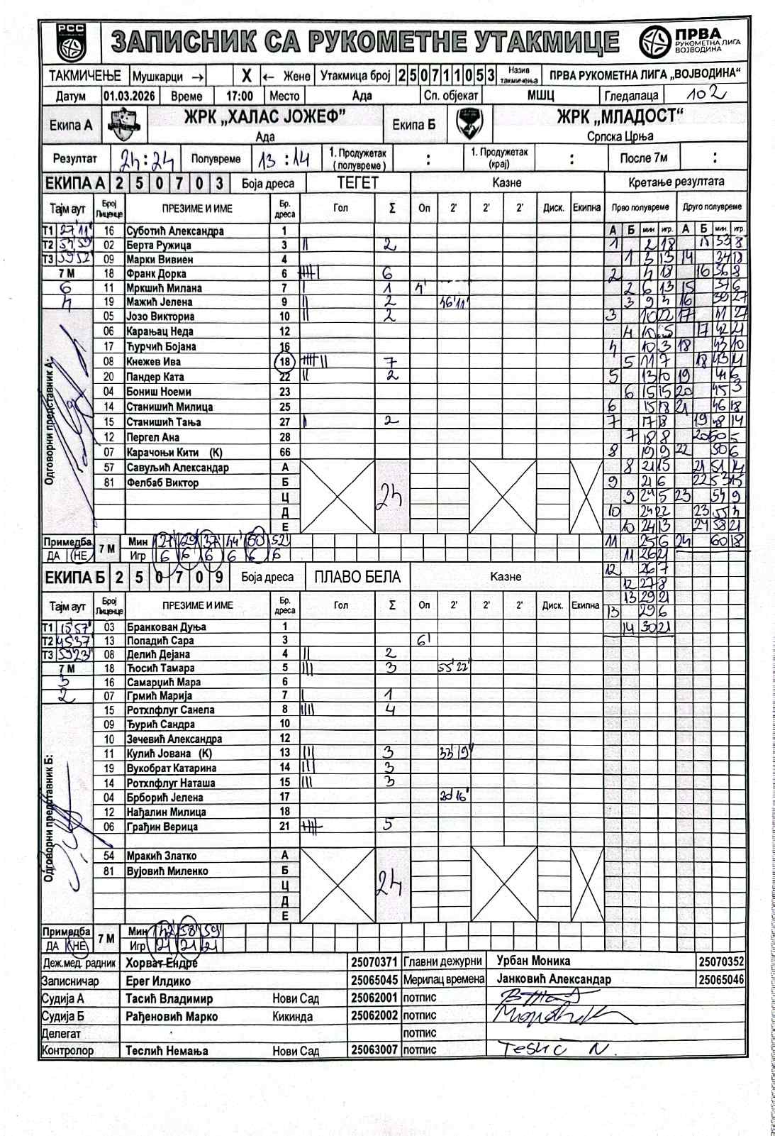 А судија: Владимир Тасић Б судија: Марко Рађеновић Контролор: Немања Теслић |