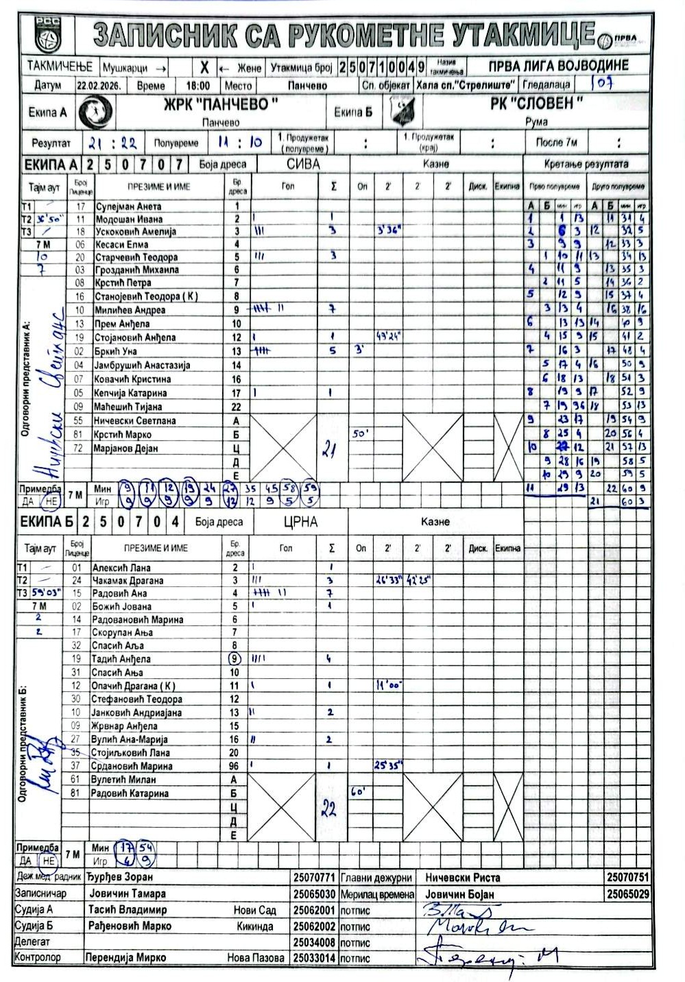 А судија: Владимир Тасић Б судија: Марко Рађеновић Контролор: Мирко Перендија |