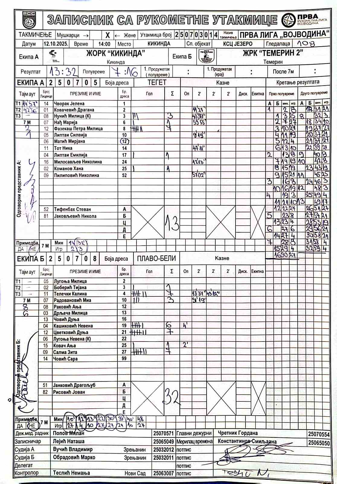 А судија: Владимир Вучић Б судија: Марко Обрадовић Контролор: Немања Теслић |