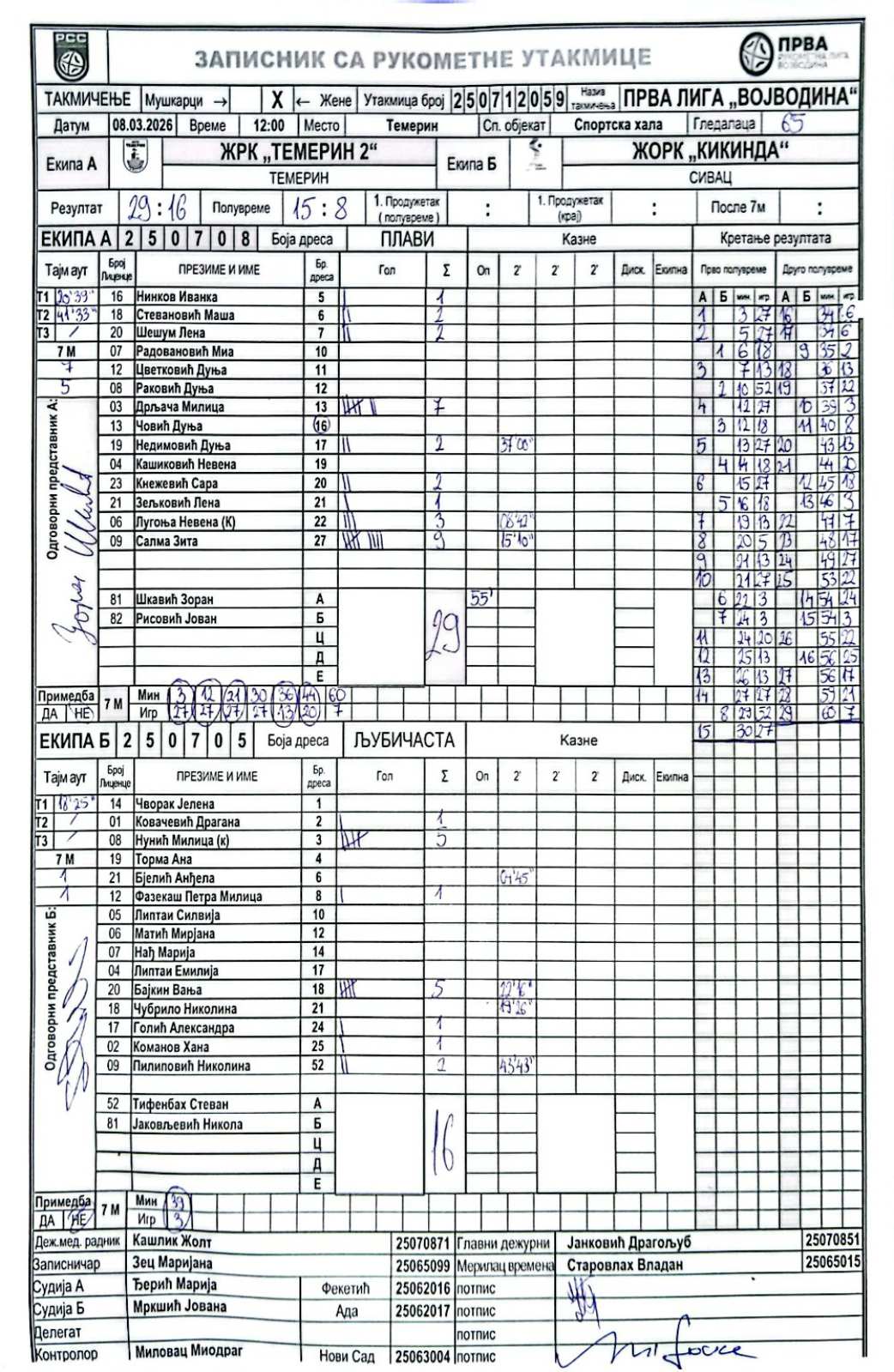 А судија: Марија Ђерић Б судија: Јована Мркшић Контролор: Миодраг Миловац |