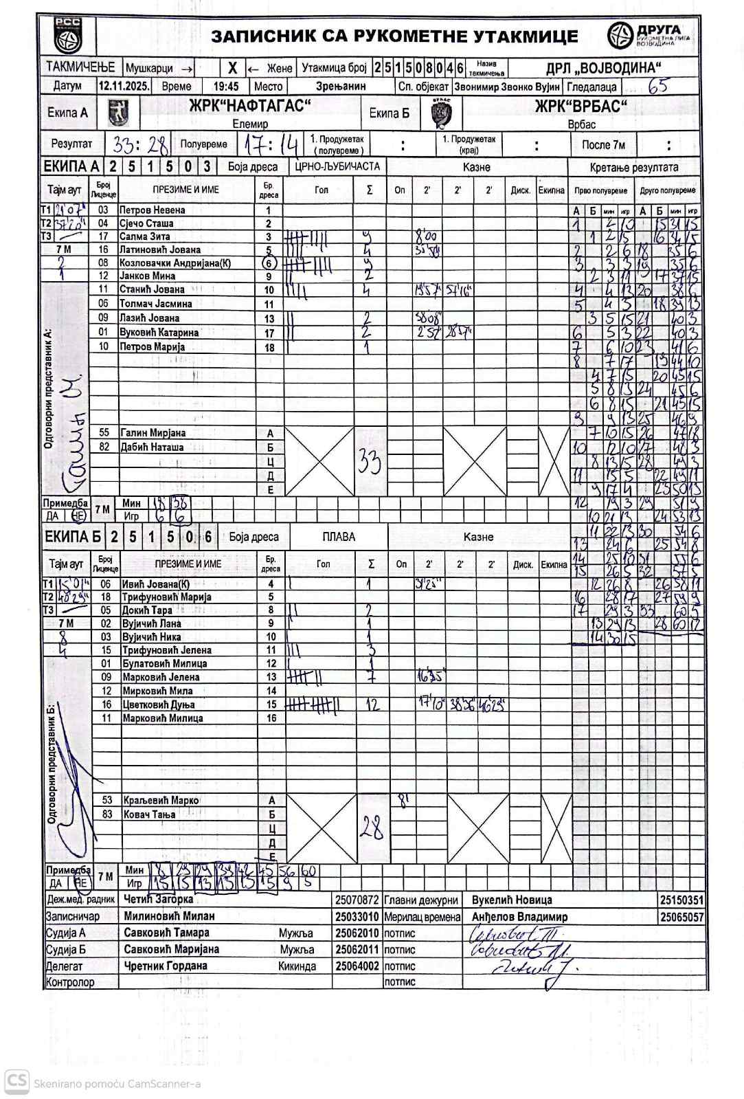 А судија: Тамара Савковић Б судија: Маријана Савковић Делегат: Гордана Чретник |