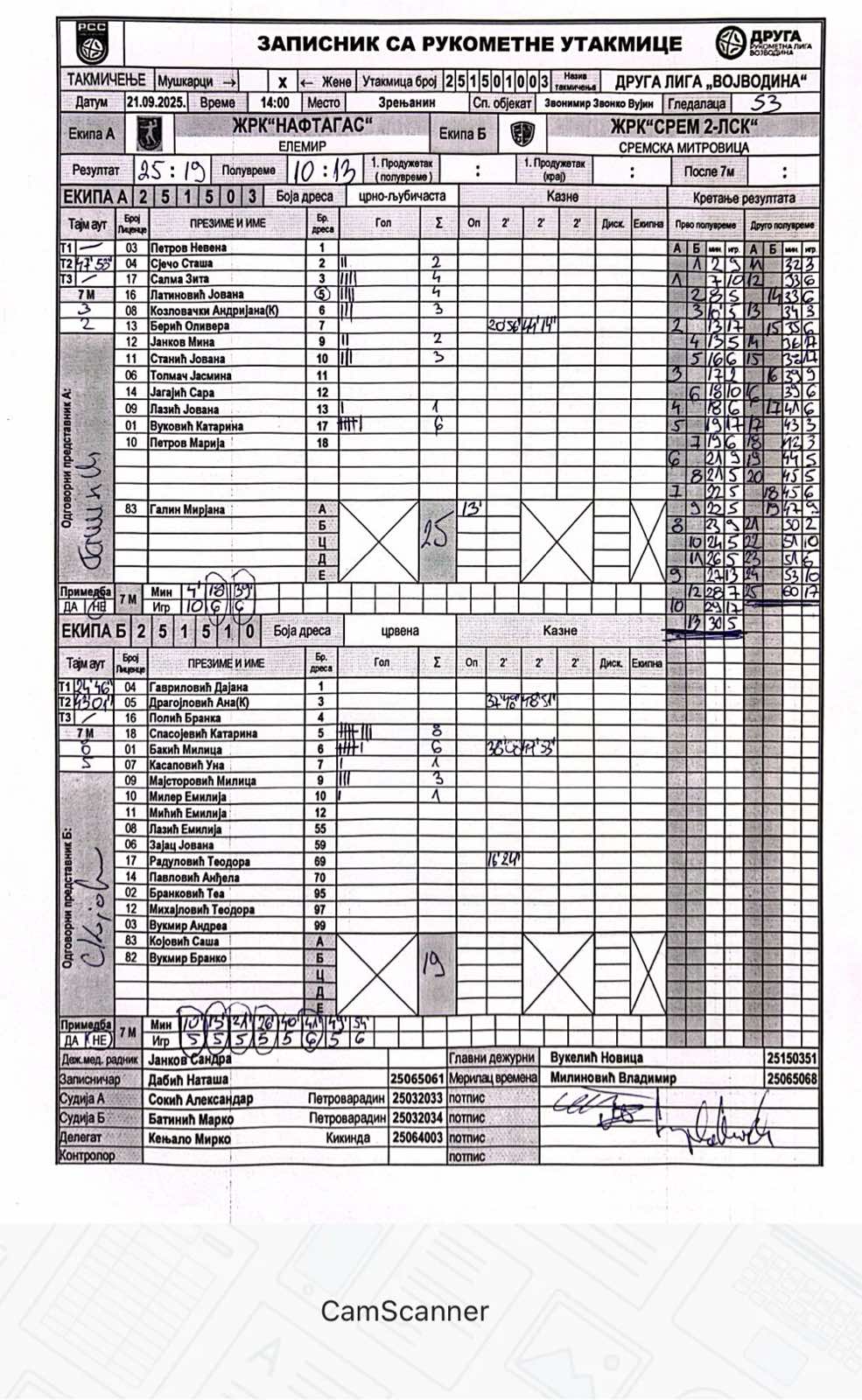 А судија: Александар Сокић Б судија: Марко Батинић Делегат: Мирко Кењало |