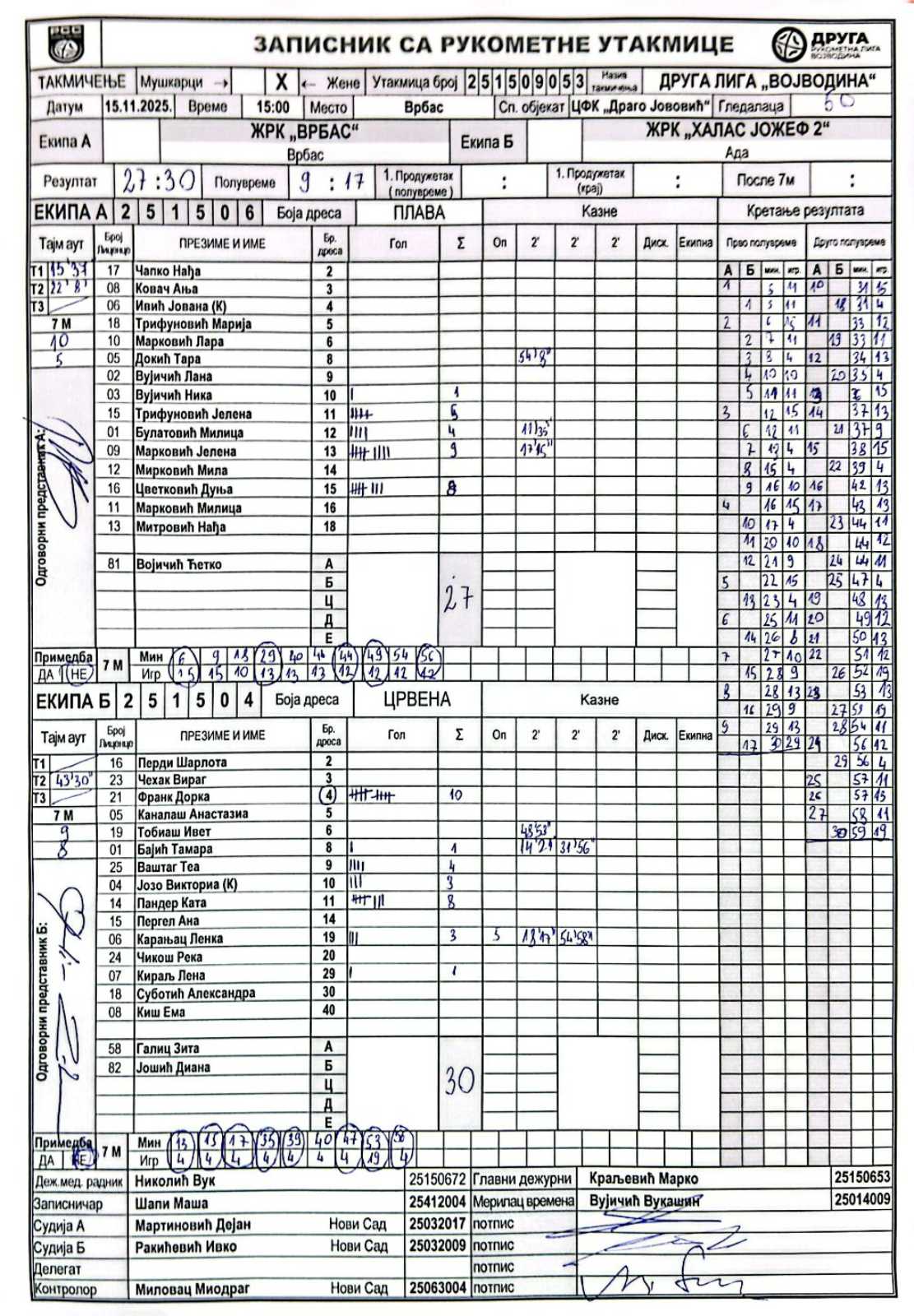 А судија: Дејан Мартиновић Б судија: Ивко Ракићевић Контролор: Миодраг Миловац |