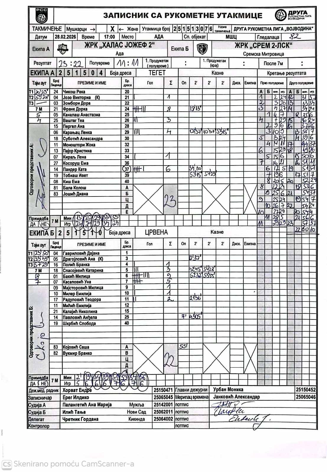 А судија: Ана Марија Палангетић Б судија: Тања Илић Делегат: Гордана Чретник |