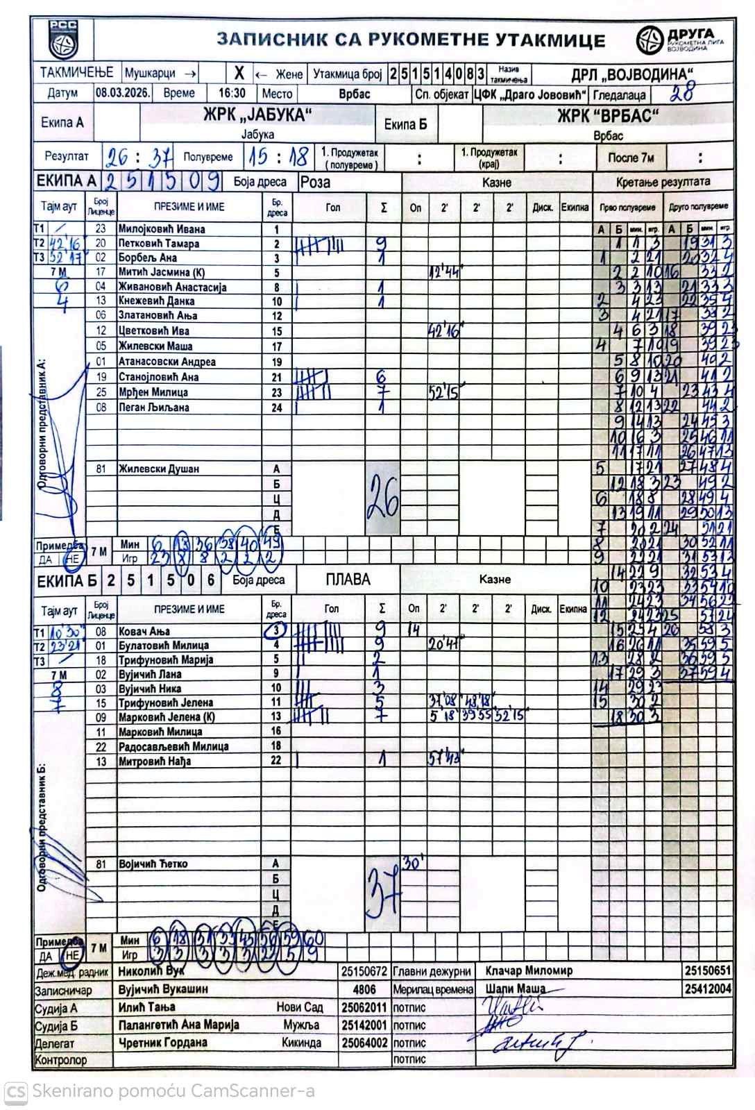 А судија: Тања Илић Б судија: Ана Марија Палангетић Делегат: Гордана Чретник |