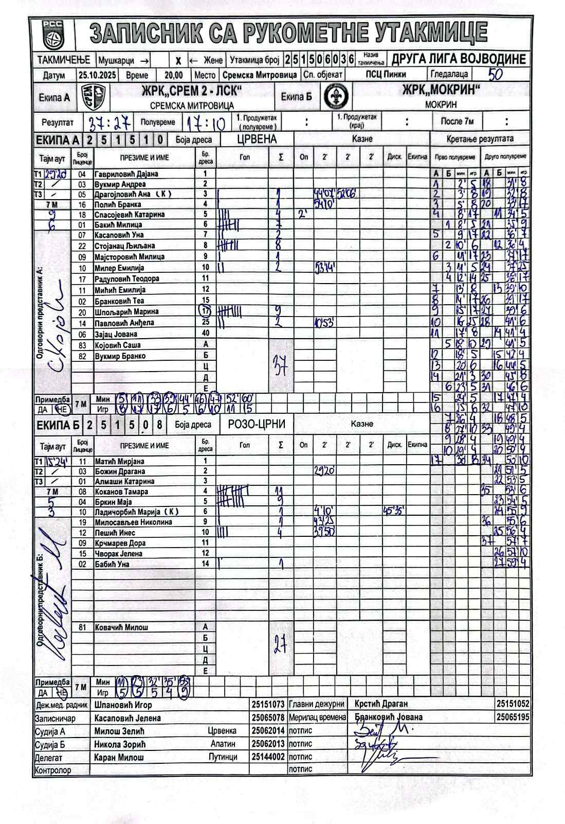 А судија: Милош Зелић Б судија: Никола Зорић Делегат: Милош Каран |