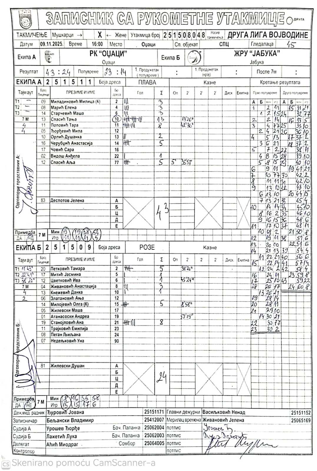 А судија: Ђорђе Урошев Б судија: Лука Лажетић Делегат: Миодраг Аћић |