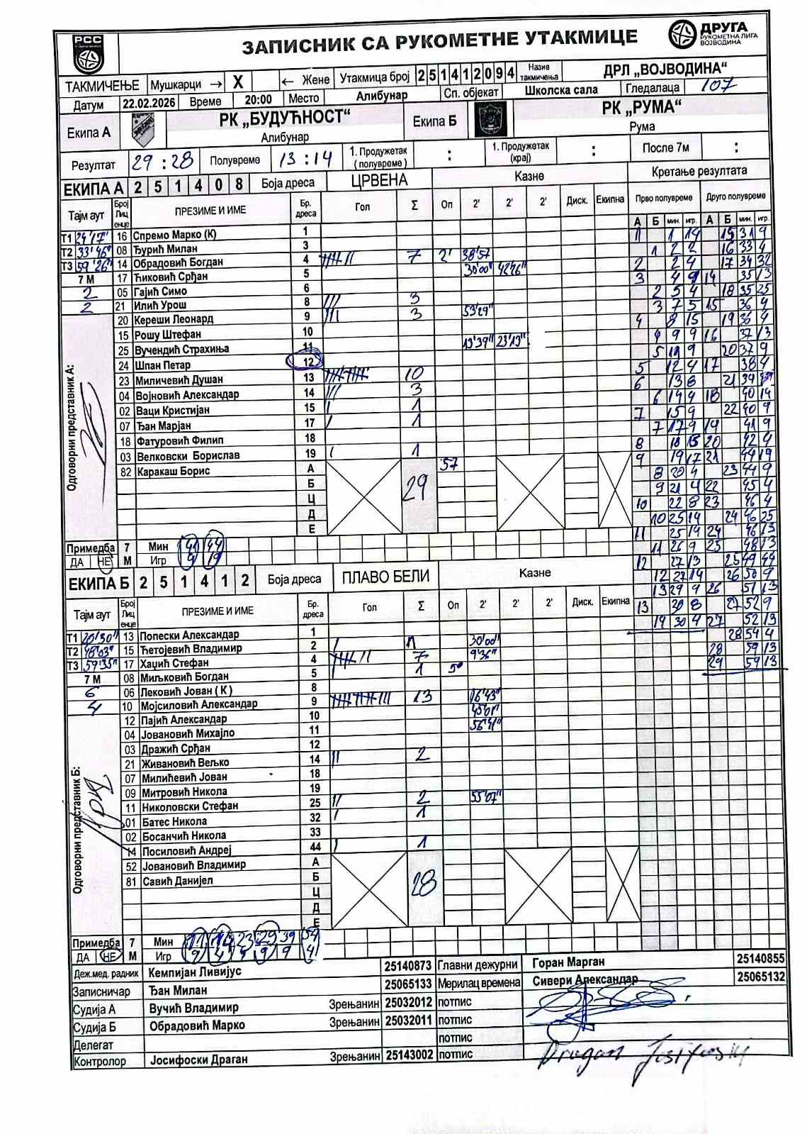 А судија: Владимир Вучић Б судија: Марко Обрадовић Контролор: Драган Јосифоски |