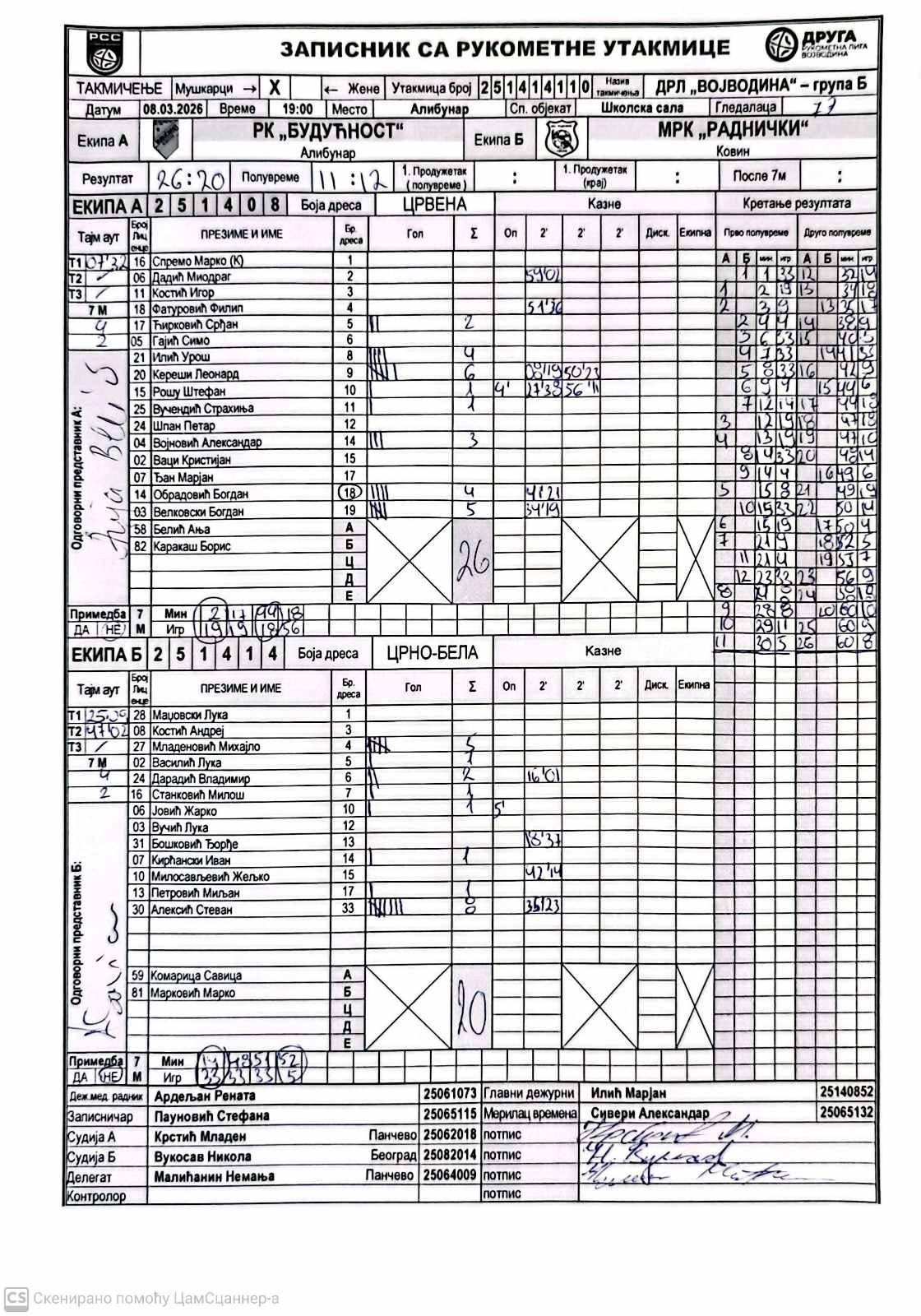 А судија: Младен Крстић Б судија: Никола Вукосав Делегат: Немања Малићанин |
