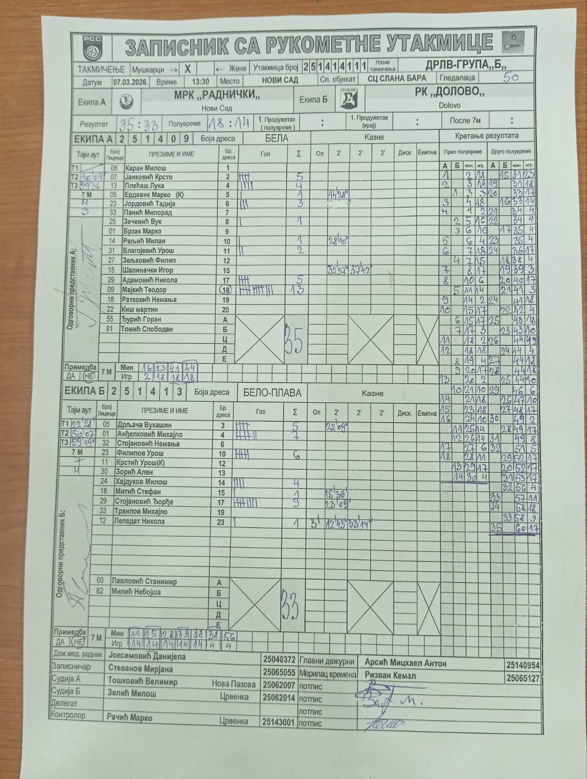 А судија: Велимир Тошковић Б судија: Милош Зелић Контролор: Марко Рачић |