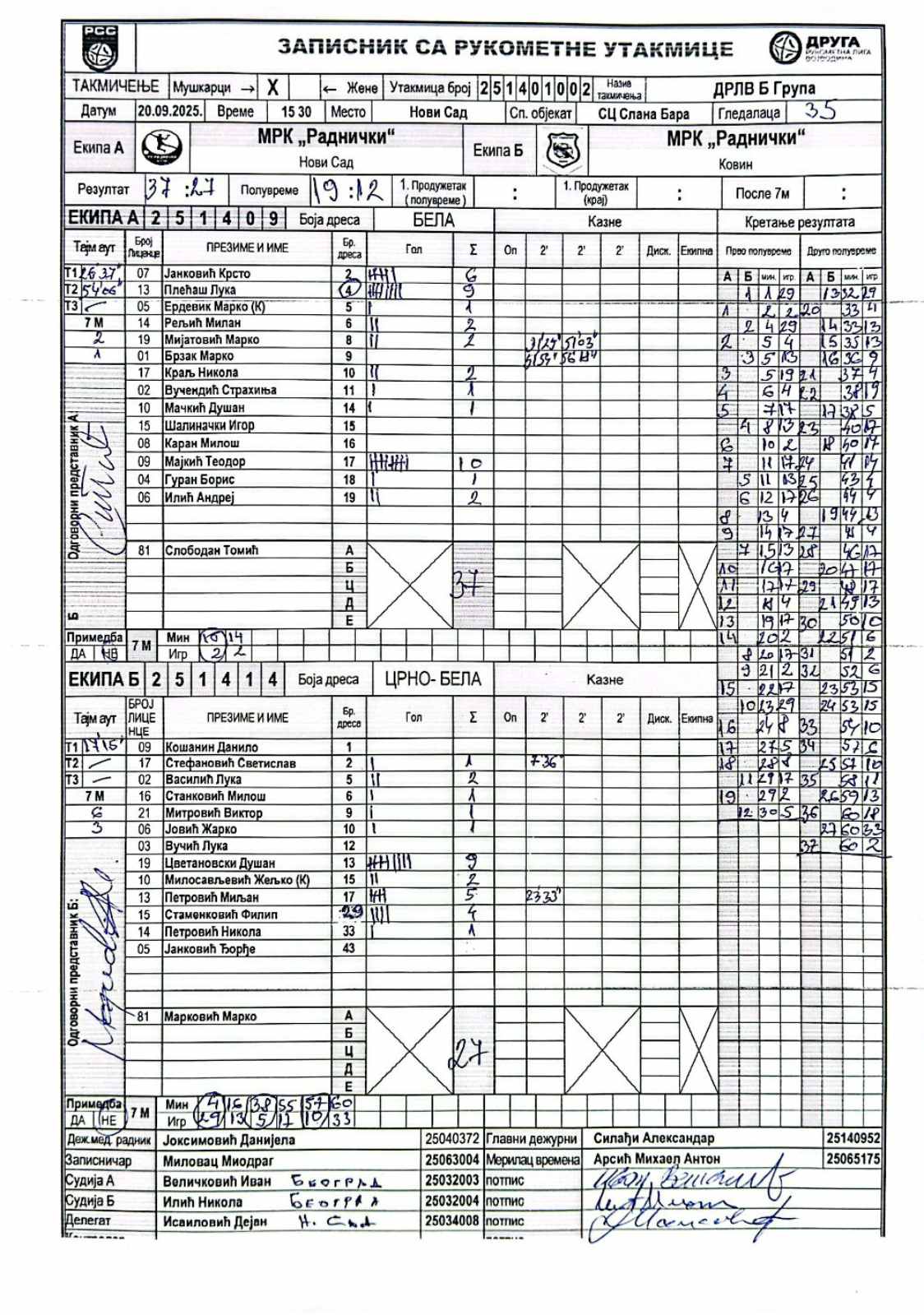 А судија: Иван Величковић Б судија: Никола Илић Делегат: Дејан Исаиловић |