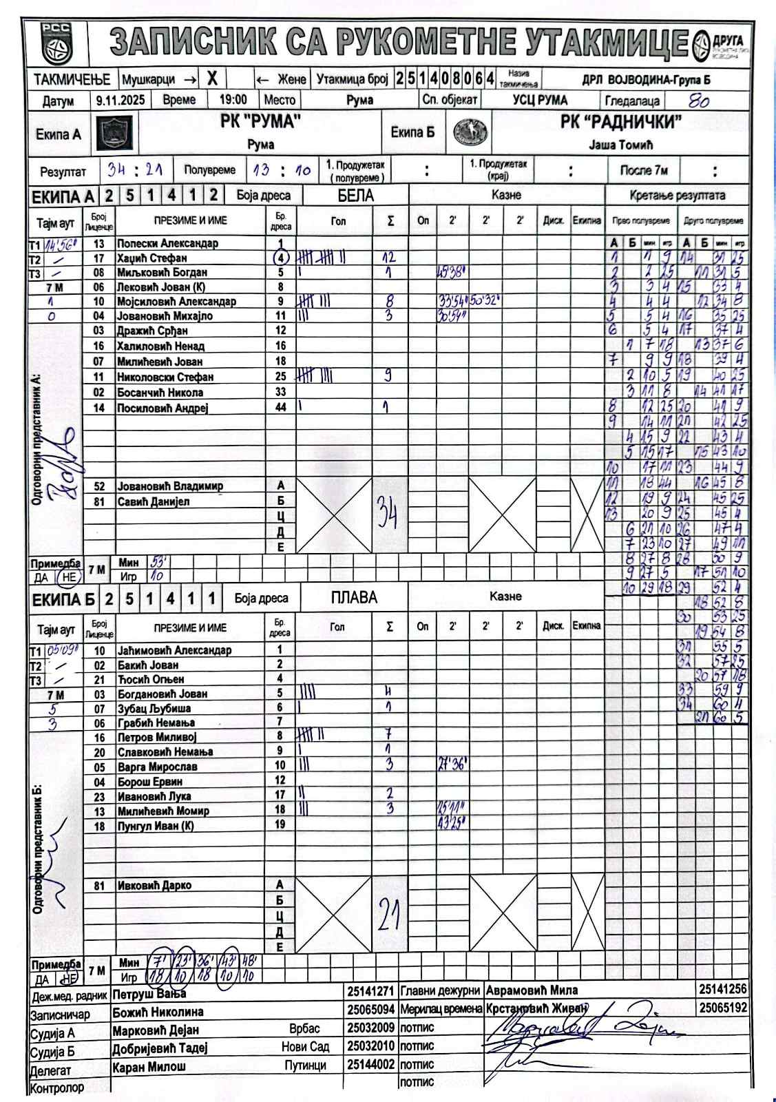А судија: Дејан Марковић Б судија: Тадеј Добријевић Делегат: Милош Каран |