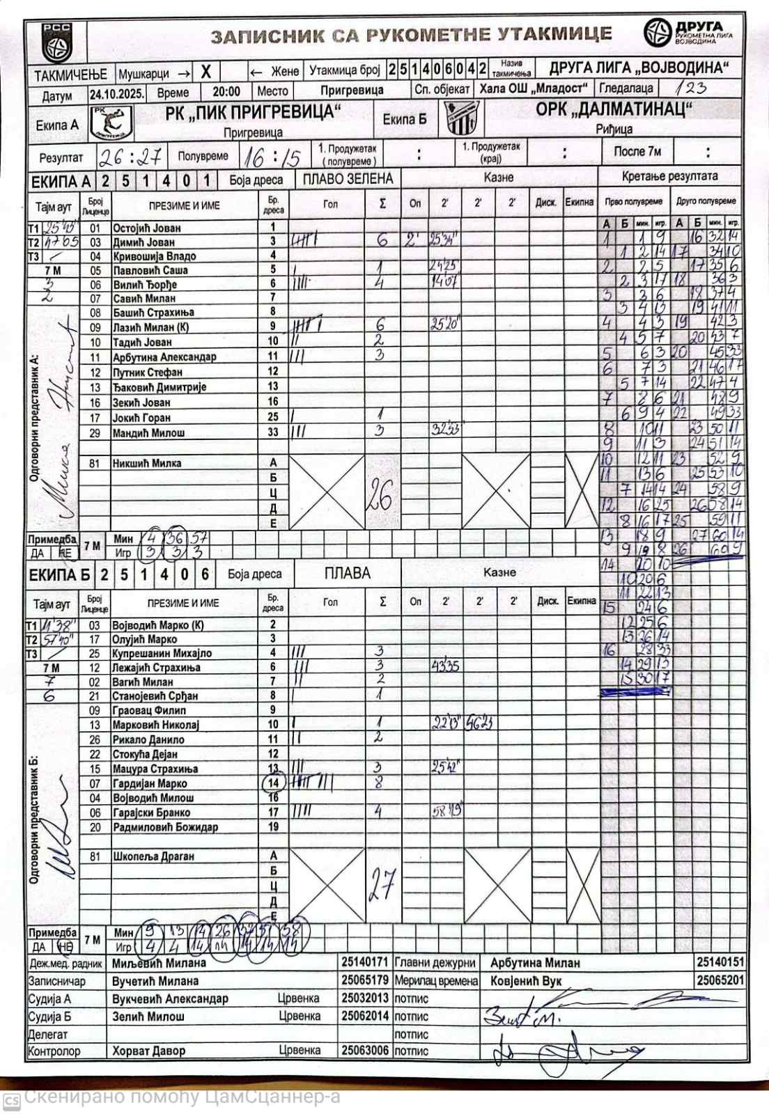 А судија: Александар Вукчевић Б судија: Милош Зелић Контролор: Давор Хорват |