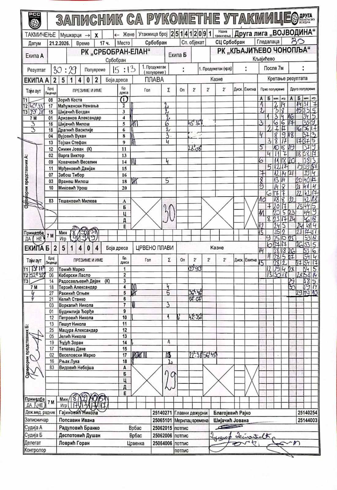 А судија: Бранко Радуловић Б судија: Душан Деспотовић Делегат: Горан Ловрић |