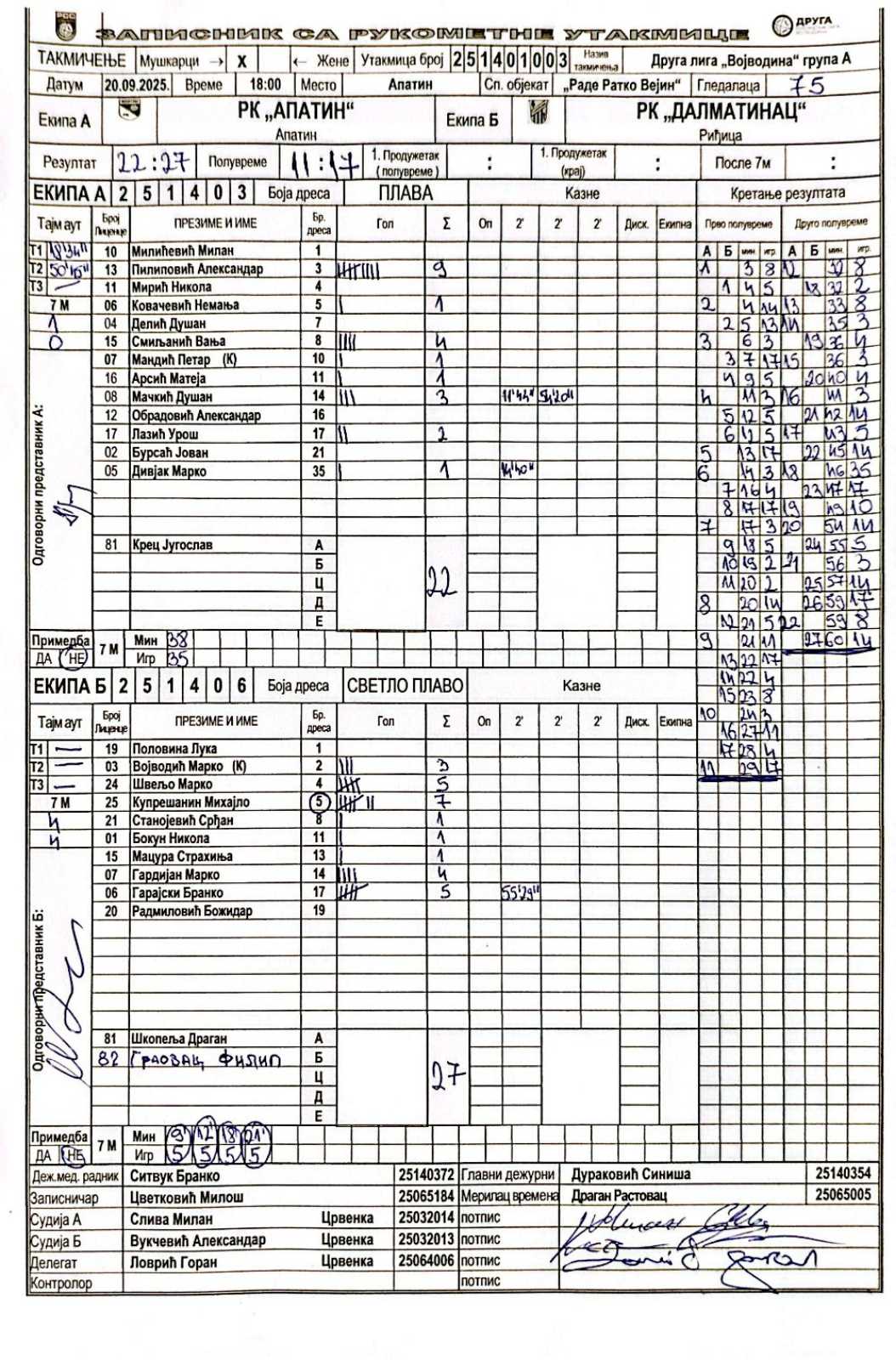 А судија: Милан Слива Б судија: Александар Вукчевић Делегат: Горан Ловрић |
