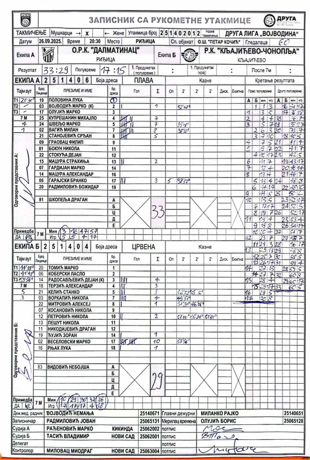 А судија: Марко Рађеновић Б судија: Владимир Тасић Контролор: Миодраг Миловац |