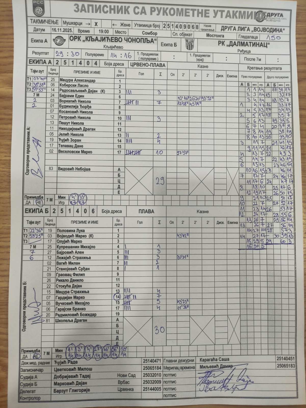А судија: Тадеј Добријевић Б судија: Дејан Марковић Делегат: Глигорије Барзут |
