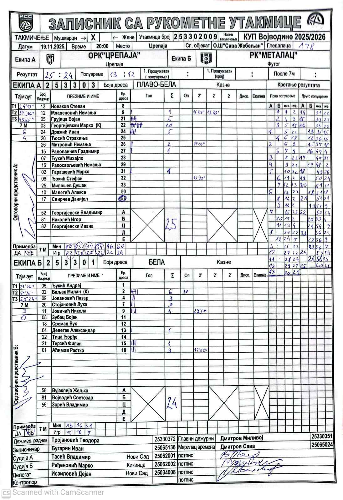 А судија: Владимир Тасић Б судија: Марко Рађеновић Делегат: Дејан Исаиловић |