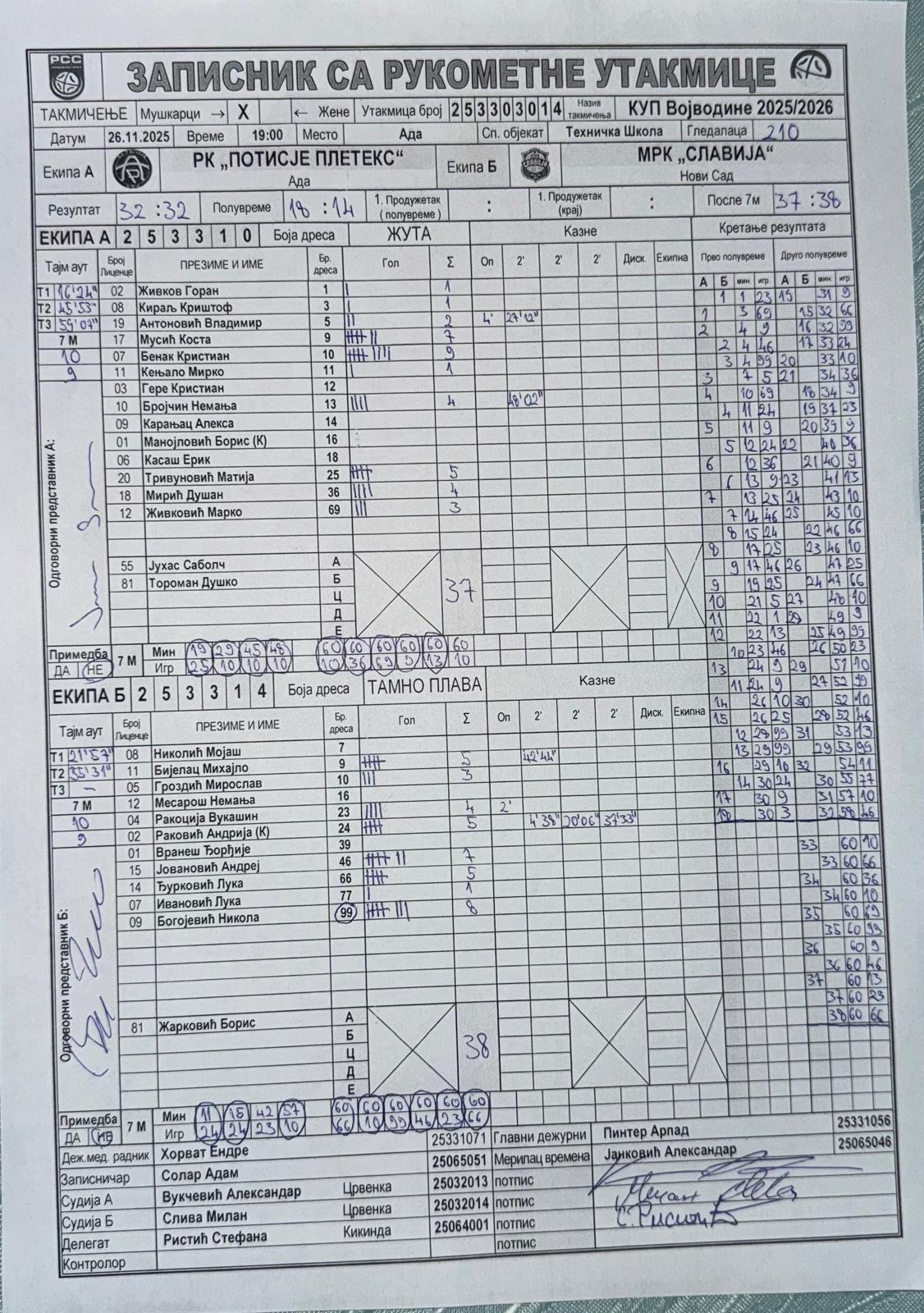 А судија: Александар Вукчевић Б судија: Милан Слива Делегат: Стефана Ристић |